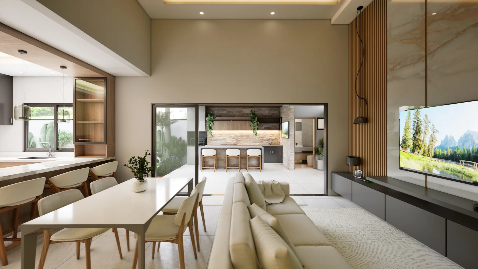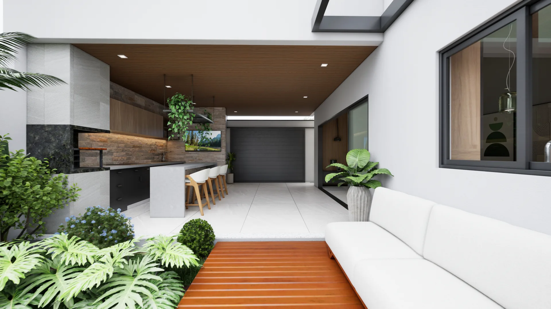 Um projeto que redefine o conceito de morar bem em terrenos compactos. Com design inteligente em “L”, esta casa térrea privilegia a integração fluida entre a área social e o lazer, criando ambientes amplos, ventilados e visualmente conectados. ✨