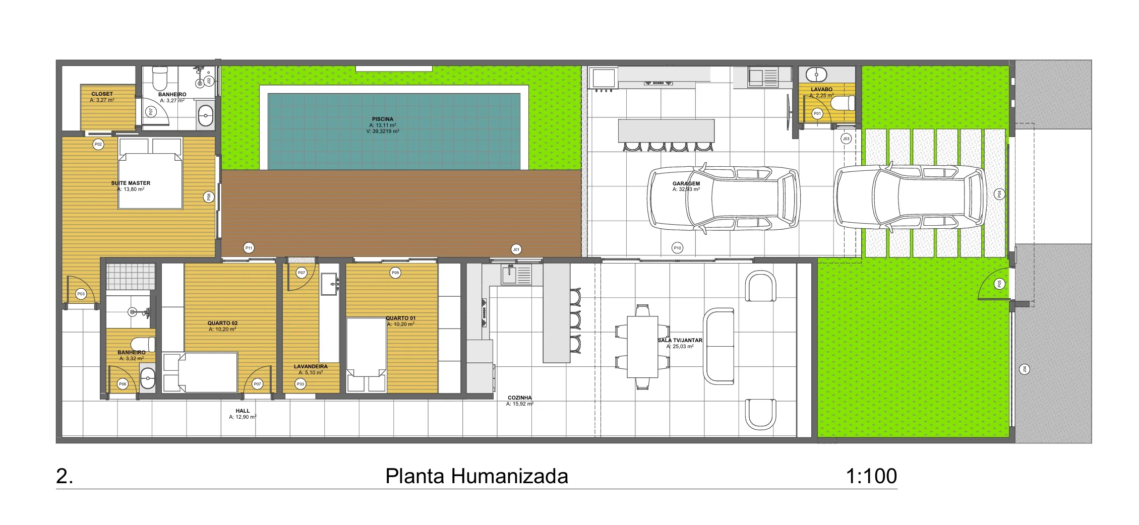📏 Terreno: projetada para lote de 10x25m, podendo ser implantada também em condomínio, bastando apenas remover o muro frontal.