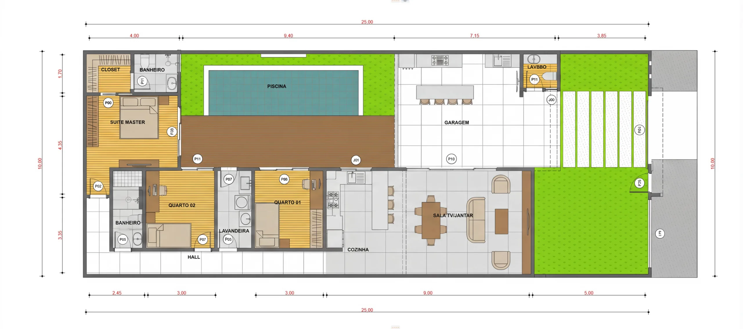 🏡 PROJETO MODERNO EM “L” – 10x25m