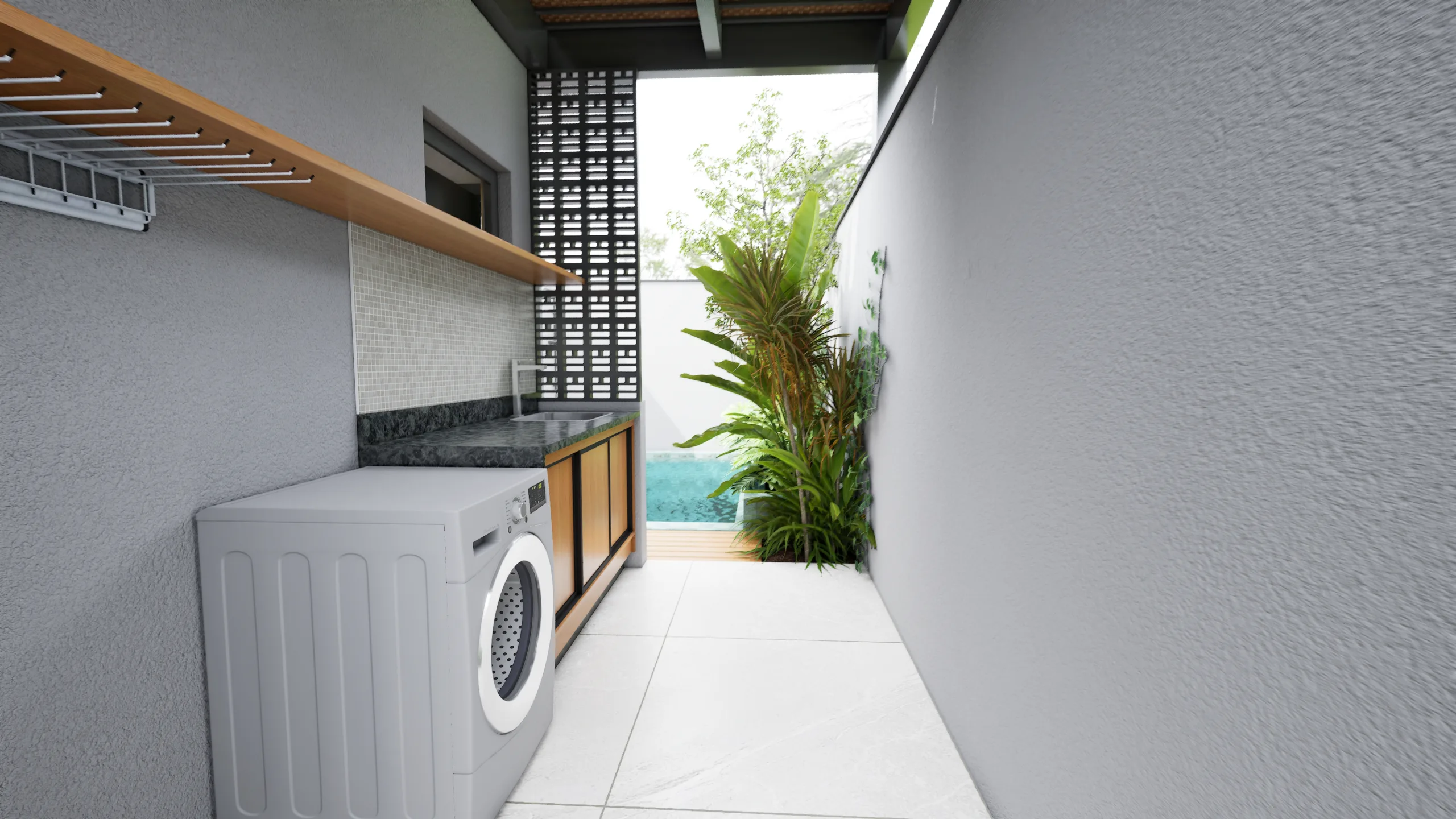 A área de serviço, localizada nos fundos, é totalmente separada, garantindo mais privacidade e organização no uso diário.
