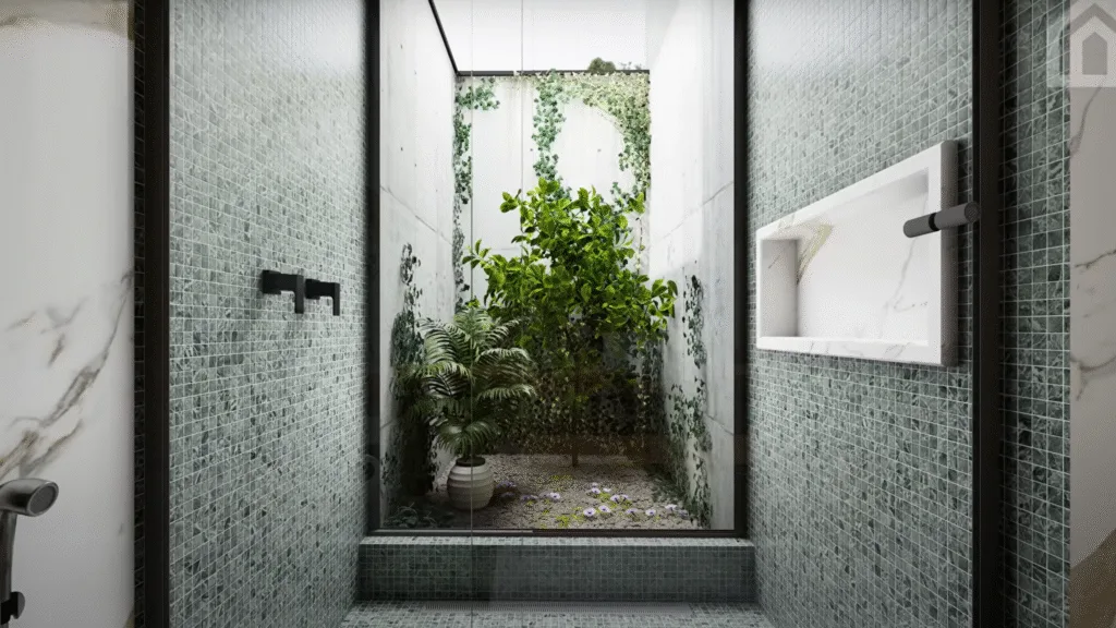 1 Lavabo integrado a um jardim de inverno – Charme e sofisticação para visitas.