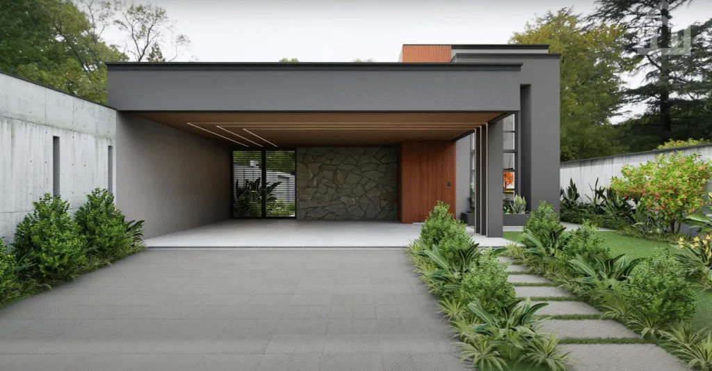 Esta casa térrea moderna combina conforto, elegância e praticidade, sendo ideal para um terreno de 12×30 metros. Seu design contemporâneo e distribuição inteligente dos espaços proporcionam um ambiente acolhedor e funcional para o dia a dia.